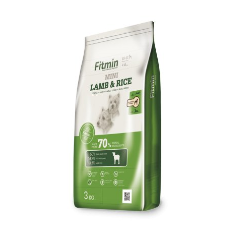 Fitmin Dog Мини Lamb & Rice е храна дизајнирана за сите кучиња од средни и големи раси, кои сакате да уживаат во прехранбената храна со јагнешкото месо. Погодна за кучиња со чувствително варење или алергија, со потреби за  висококвалитетна енергија, која ја добиваат од храна што е само за нив. Храната содржи само јагнешко месо , па ако вашето куче е алергично на други видови на месо, овие гранули се најпогодни за него. За вкусен вкус, оваа храна содржи 50% свежо јагнешко месо, кое кога е во комбинација со ориз, имате одличен полноправен оброк збогатен со здравствени придобивки како што се пребиотици, јукки, хелати, комплекси за стоматолошка заштита и многу повеќе.