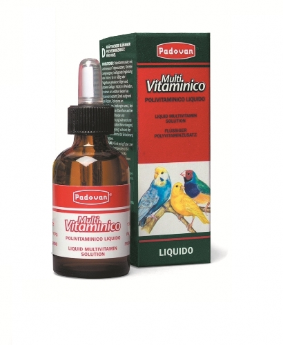 Vitaminico – Мултивитамини за птица во вид на капки се додаваат во вода или храна 4-5 ml на kg храна или 1 l вода. Содржат , витамини: А , K3,D3 , В1 , В2 , В6 , В12 , Е , C , calcium , biotin , мултивитамини кои е пожелно да им се даваат на вашата птица , во стресни ситуации пр. ако треба да патувате со неа или кога се менува времето па има нагла промена на температурите и слично.